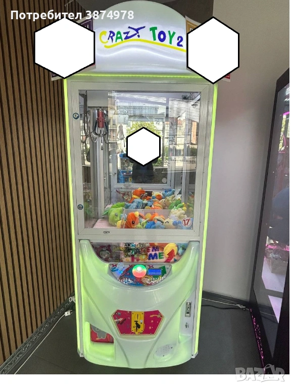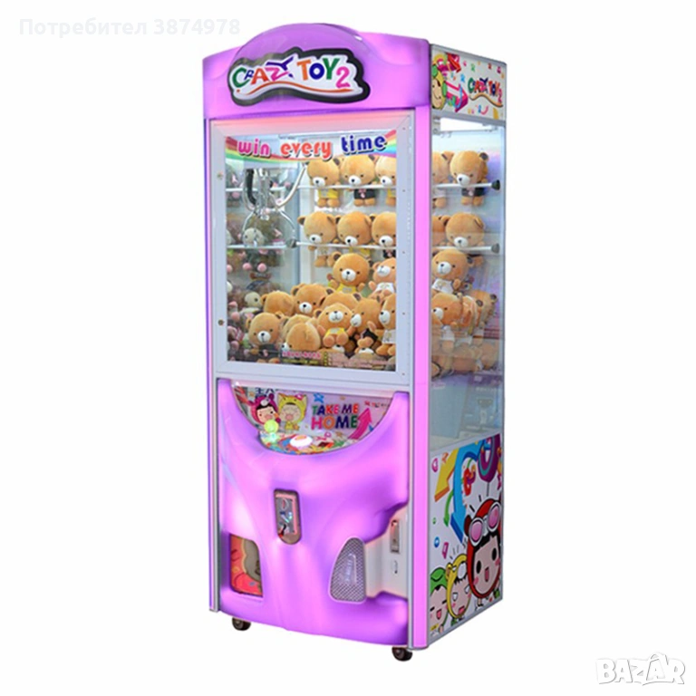 Кран за играчки Crazy Toy 2. Кран за плюшени играчки на житони или евро центове