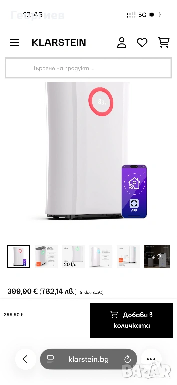 Нов! Лесният начин за идеална влажност: обезвлажнителят Klarstein DryFy Pro Connect 20 с WiFi интерфейс изсушава влажни помещения след строителство, ремонт и водни щети или просто контролира влажността в кухнята, банята и спалнята. С въздушен поток от 180 м³ на час той извлича до 20 литра влага от въздуха на ден - обезвлажнителят Klarstein DryFy Connect 50 е идеален за помещения с площ от 35 до 50 м². Големият 5-литров резервоар събира вода и винаги може да бъде изпразнен навреме, когато контейнерът е пълен, благодарение на функцията за аларма и автоматичното изключване. Благодарение на WiFi интерфейса можете удобно да управлявате устройството чрез приложението на Klarstein, да го програмирате предварително с таймер и да зададете предварително целевата влажност.
