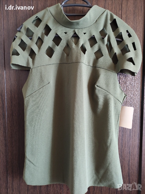 нова зелена еластична блуза с изрязани части → Обява 54179258
