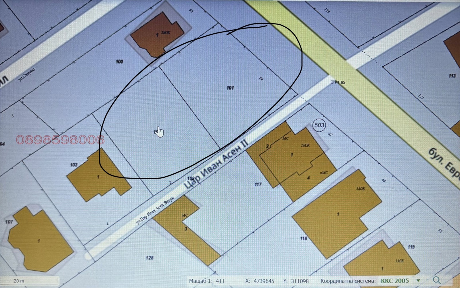 Имотът е в гр. Божурище, на бул. Европа, със страхотна локация. Газифициран. Предназначение - за ниско строителство до 10 м.