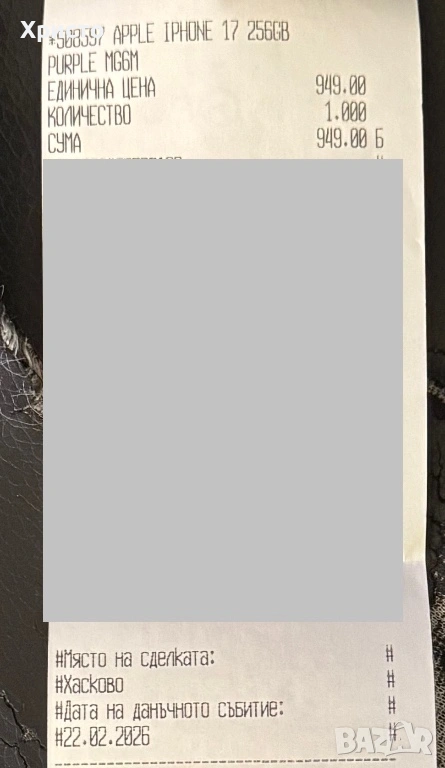 Закупен е на 22 Февруари 2026 година от Технополис и разполага с 24 месеца гаранция. Платен е в брой и е напълно отключен – работи без проблем с всички оператори. Устройството функционира безупречно, всички функции работят отлично, без никакви забележки и без да е бил на сервиз.