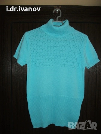 синя блуза машинно плетиво с поло яка → Обява 54179374