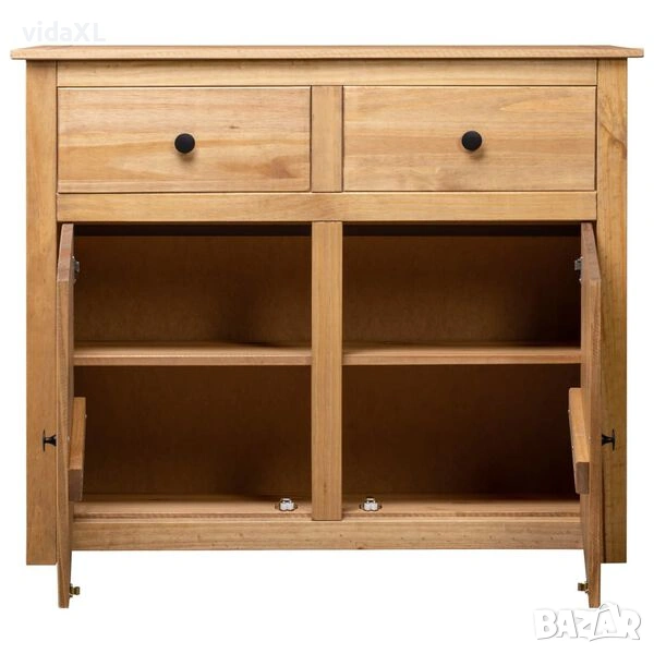 Проектиран с 2 чекмеджета и 2 вратички, бюфетът поддържа вашите списания, книги, DVD дискове и мултимедийни устройства добре подредени и на една ръка разстояние. Стабилният му плот е идеален за поставяне на декоративни елементи като вази или саксийни растения. Шкафът е изработен от масивна борова дървесина. Всяка стъпка от процеса се извършва с най-голямо внимание – било то полиране, боядисване или лакиране. Изящната изработка и естетически издържаните дървесни текстури правят всяка мебел уникална и малко по-различна от следващата.
