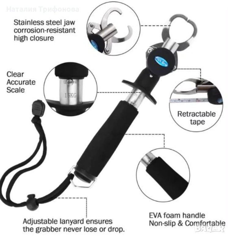 Функции: Измерване на теглото, задържане и манипулиране на хищни риби;