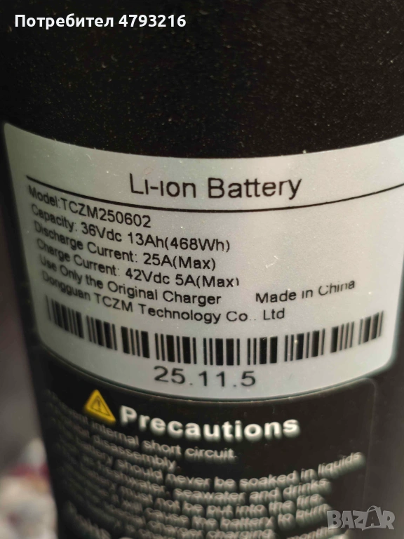 Има Батерия която може да се сваля и зарежда 36V 13AH (468Wh)