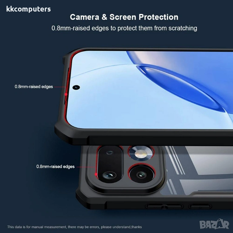 0.8 mm повдигнати ръбове за защита: Издигнатите ръбове около камерния модул и екрана (0.8 mm) предпазват от директен контакт с повърхности, предотвратявайки драскотини и повреди.