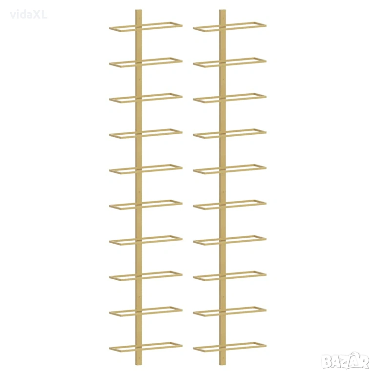 vidaXL Стенни стойки за вино за 10 бутилки 2 бр златисти метални(SKU:340907)