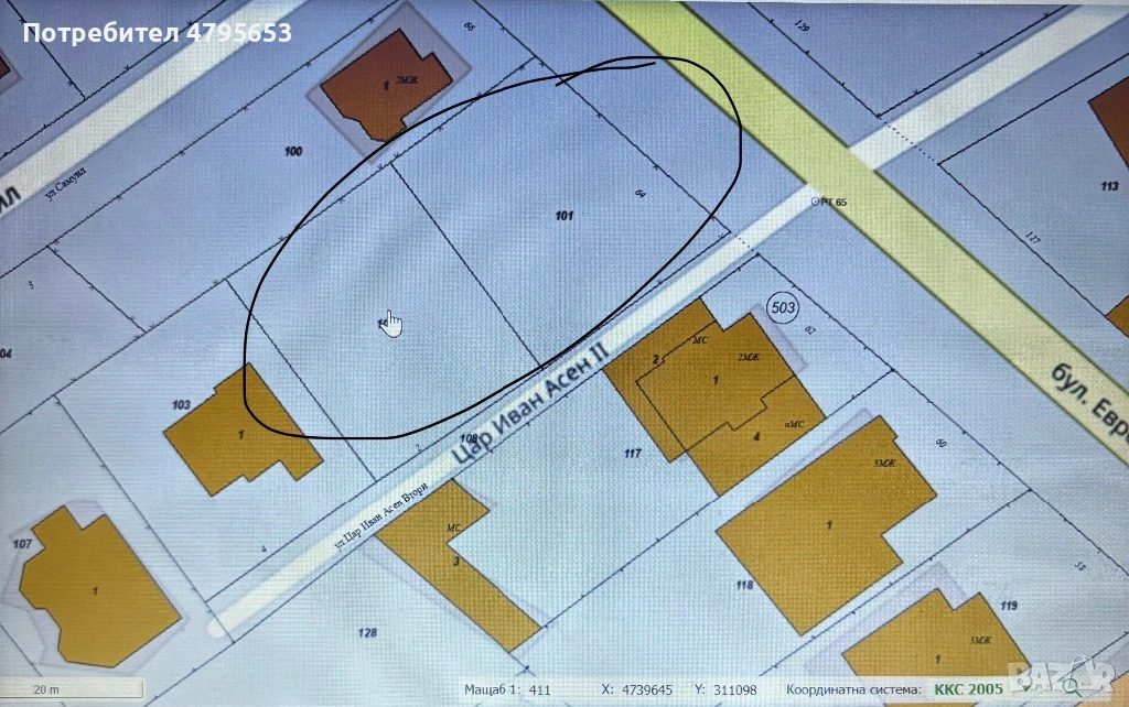 Парцел 1 123 кв м гр. Божурище бул. Европа в регулация с ток вода и газ. Нов жилищен квартал