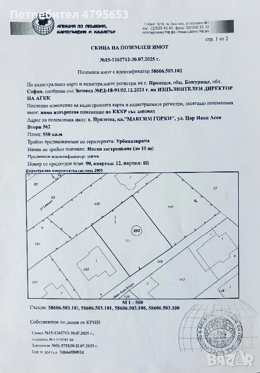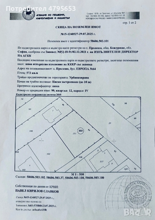 Имотът е в гр. Божурище, на бул. Европа, със страхотна локация. Газифициран. Предназначение - за ниско строителство до 10 м.