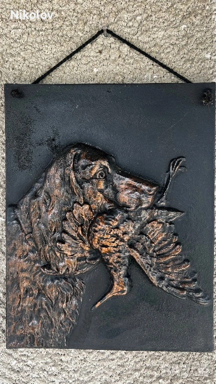 Здравейте! Продавам стара метална картина ,отливка на куче с дивеч. 30х24 см.