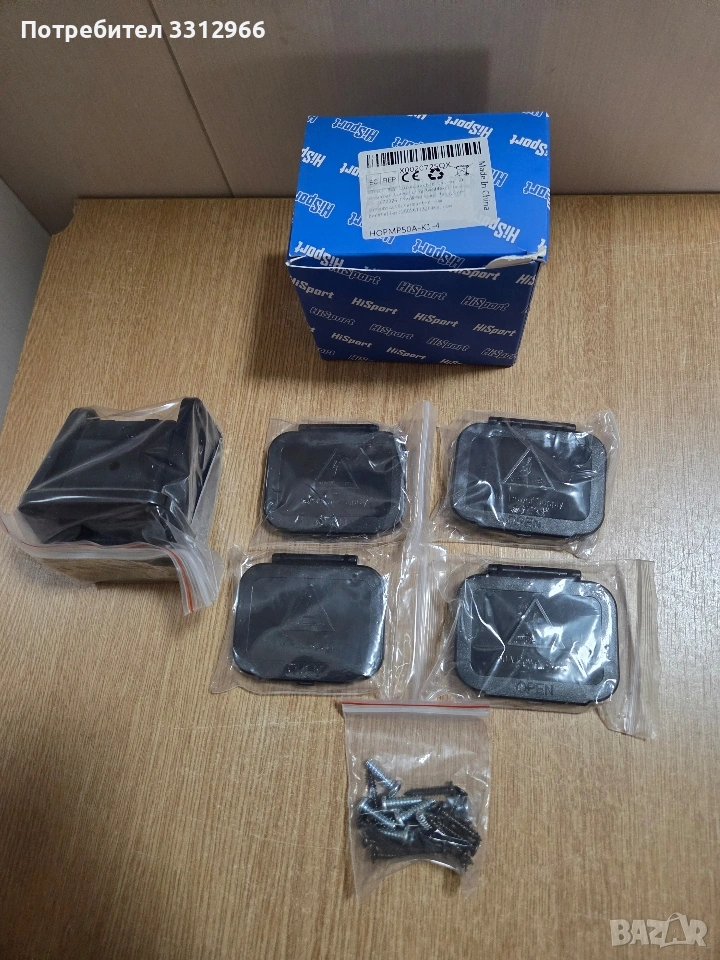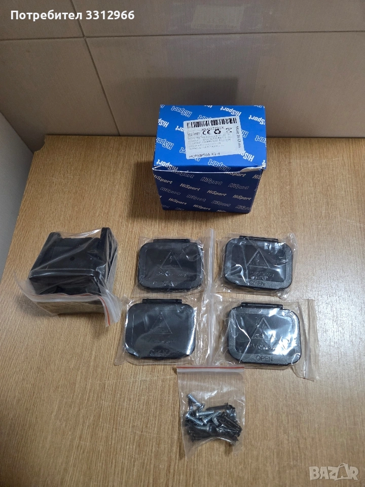 Комплект защитни капаци за външни гнезда (тип разклонителна кутия) от марката HiSport, модел 7250X (OPMPSA-K1-4). Комплектът включва: 4 водоустойчиви капака с панти и заключващ механизъм, монтажна кутия и винтове за закрепване. Приложение: Подходящ за защита на външни електрически връзки от атмосферни влияния.