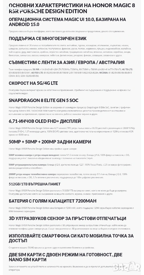 Honor Magic 8 RSR Porsche Design 5G Dual sim, 7200mAh батерия от Get Mobile