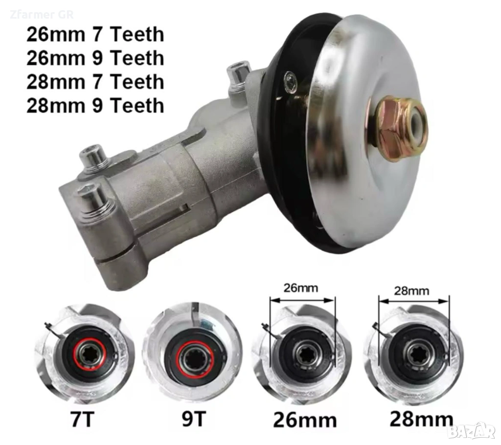 Редуктор за храсторез стандартен ф26 и ф28 Модели с 7 и 9 шлици и квадрат .