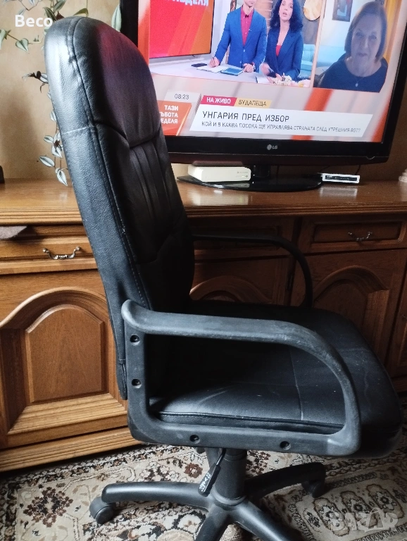 Продавам директорски кожен офис стол, в отлично механично състояние. Регулиране на височина на седалката - 43-55 см. Възможност за леко полюшване. Тел. 0898582421