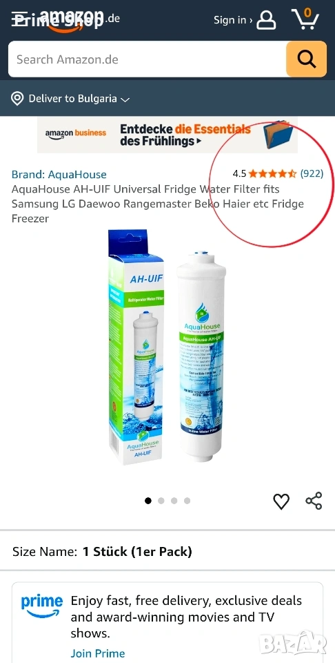 Продуктът притежава отличен потребителски рейтинг в платформата Amazon, където е оценен с 4.5 от 5 звезди на базата на над 900 ревюта. Високата оценка отразява надеждността на филтъра и неговата доказана съвместимост с множество системи за филтрация на битови електроуреди.