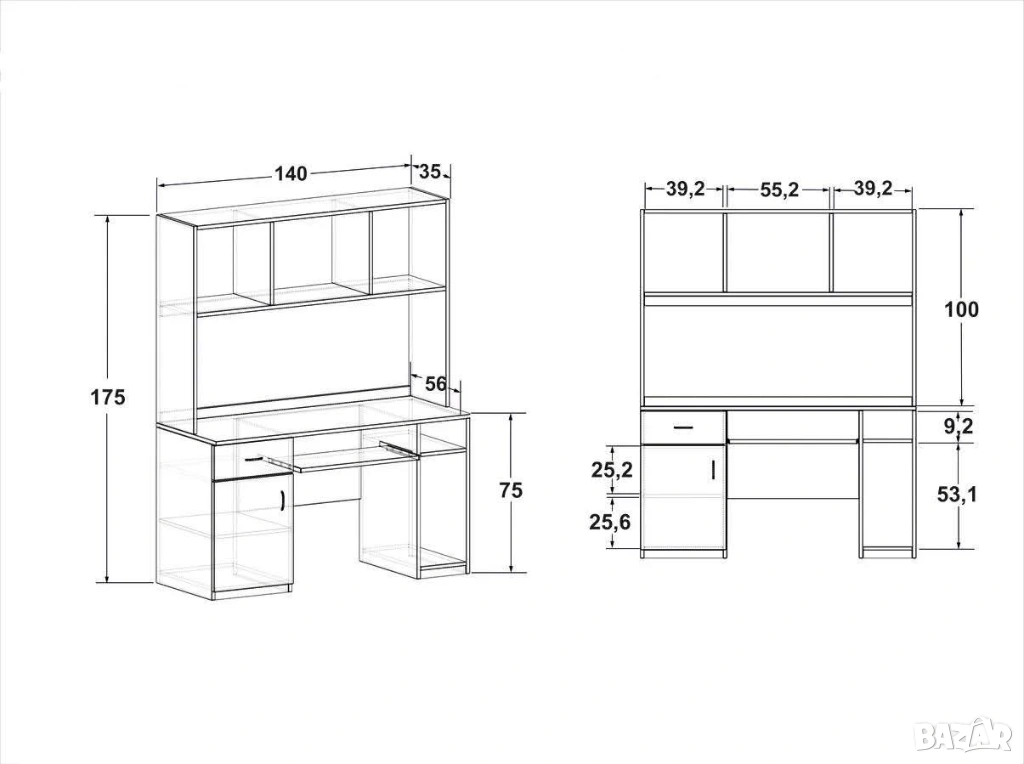 Бюро Ками е многофункционално. В лявата му част има едно чекмедже и шкафче с рафт. За компютъра е предвидено място в дясната част, а под плота можете да разположите клавиатурата. Най-прекрасното на бюрото е надстройката, на която можете да сложите вашите книги, папки, учебници, тетрадки и др.