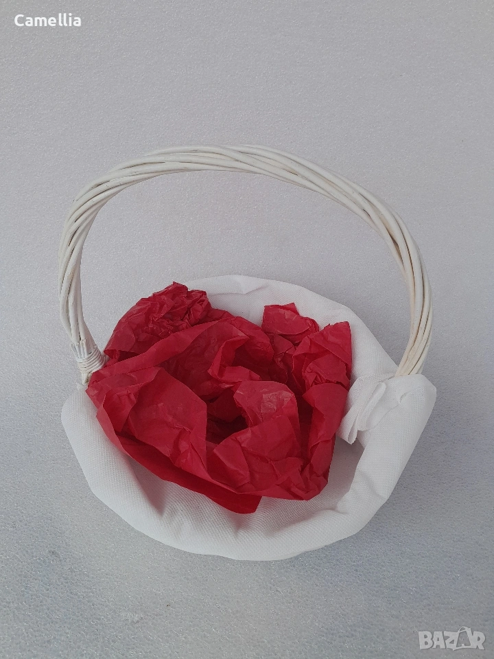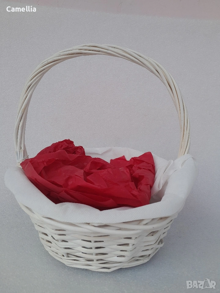 Бяла плетена декоративна кошница.