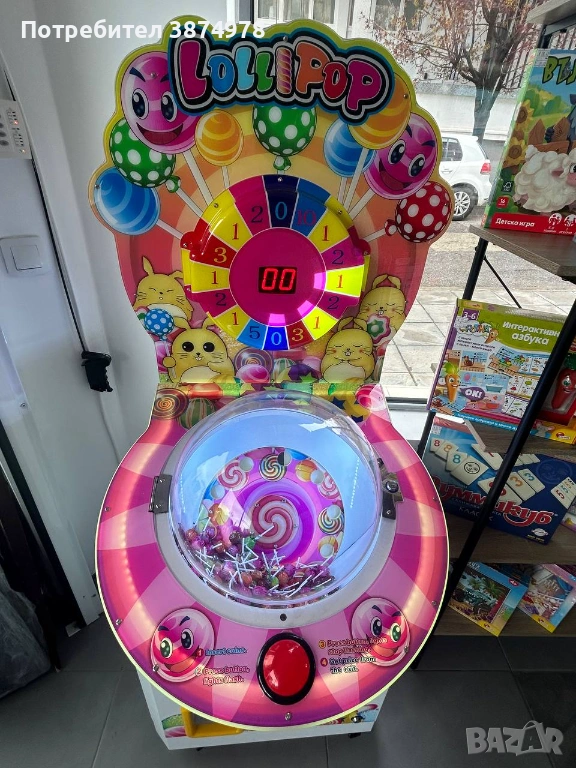 Машина за продажба на близалки с монетник или с жетони Lollipop е една от най-хитовите атракции за децата в момента. Тя съчетава забавление, изненада и вкусна награда в едно, което я прави истински магнит за малките посетители. Със своя ярък и привличащ вниманието дизайн, машината лесно се откроява във всяка среда - от игрални зали и увеселителни паркове до търговски центрове и магазини за бонбони.