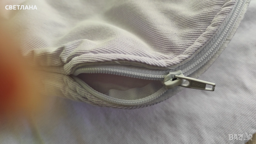 Чувалчето е 100% памук външно и вътрешно .Изцяло е ватирано с памучна вата .Ватата не е топки а е нормално разпределена ,не се размества при пране и центрофуга.