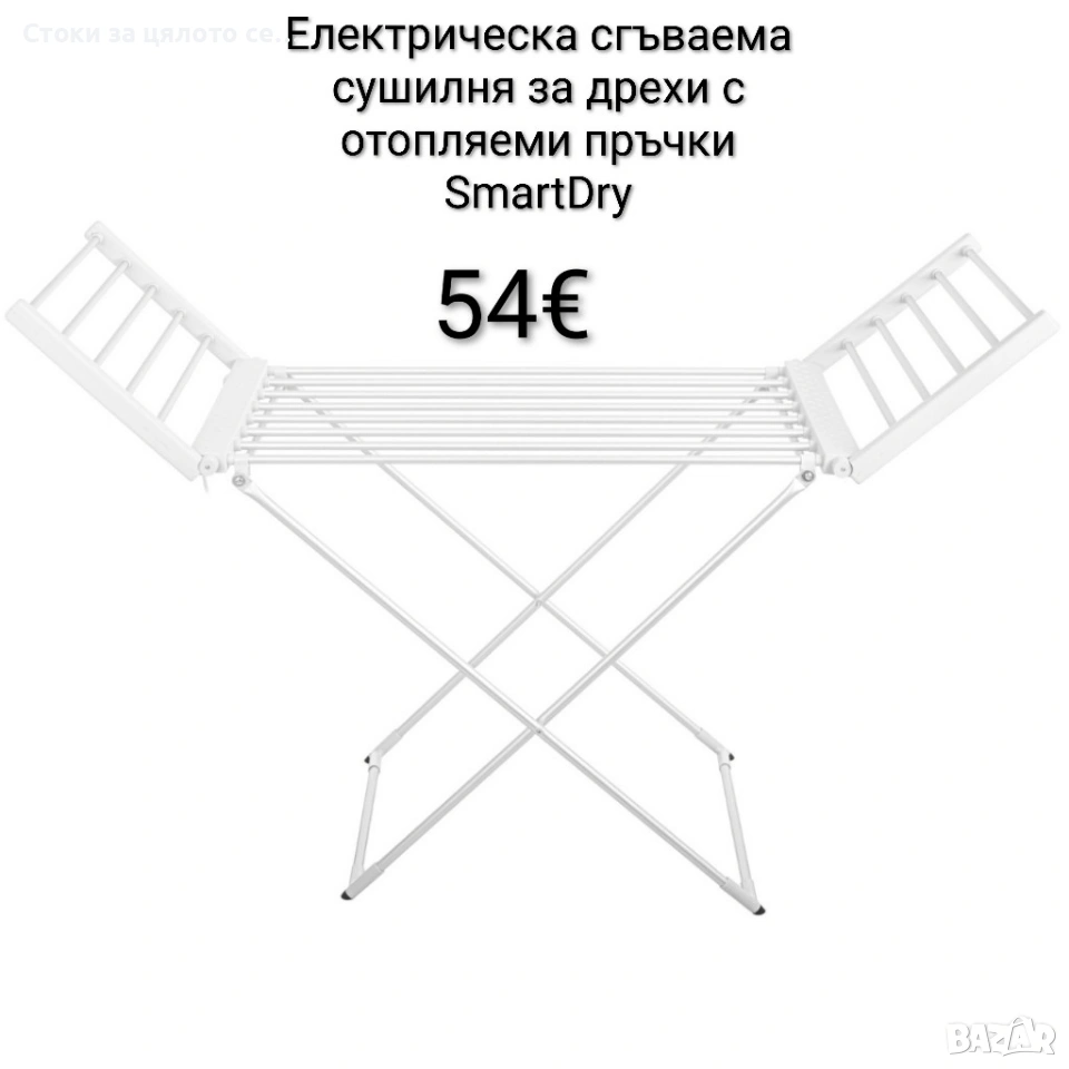 Електрическа сгъваема сушилня за дрехи с отопляеми пръчки SmartDry