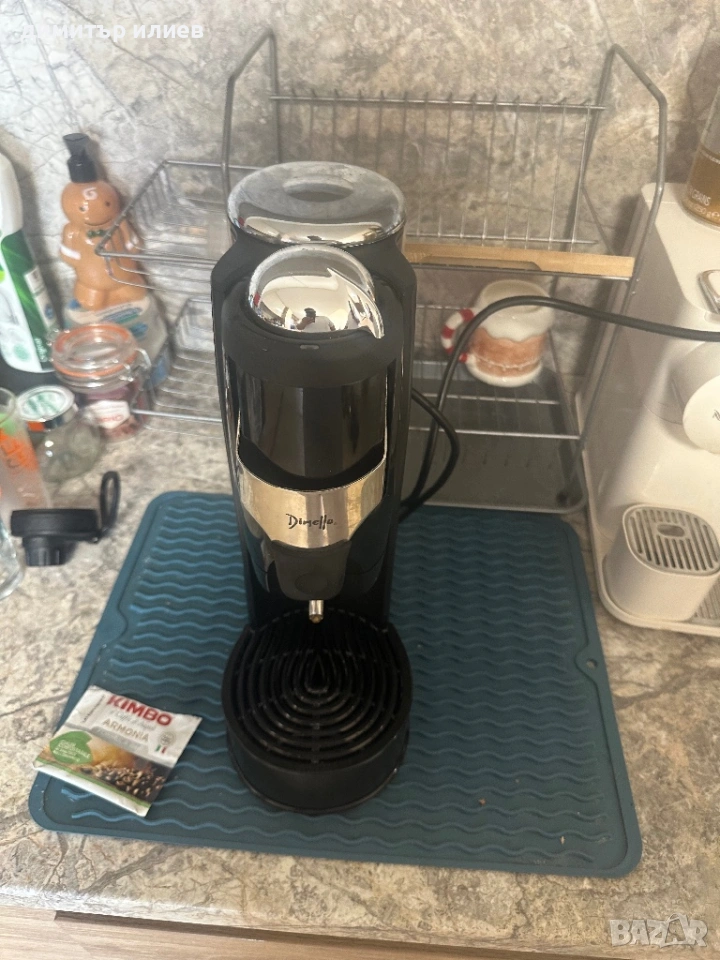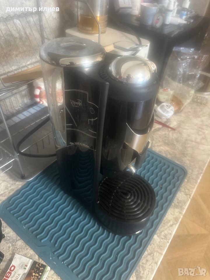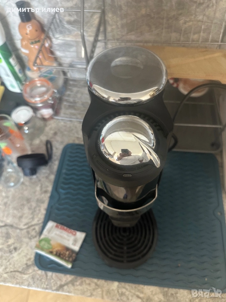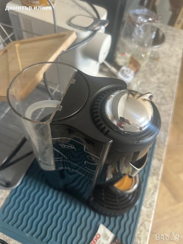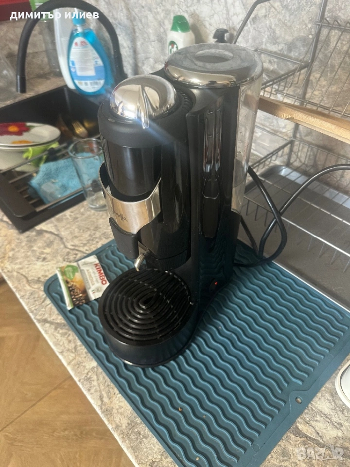 Дизайн: Компактен модел с характерен висок резервоар за вода отляво и сребрист/хромиран горен капак.