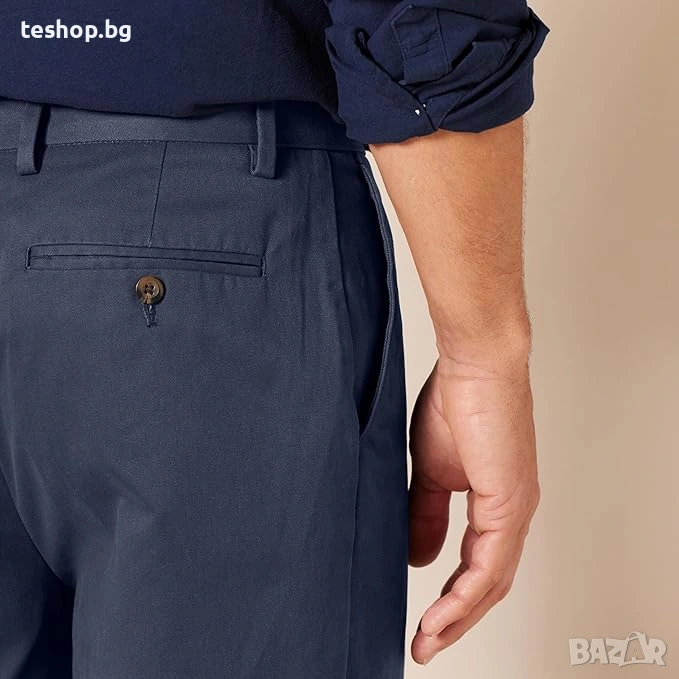 КЛАСИЧЕСКИ СТИЛ: Чино панталон с плоски предни детайли, универсален, но вталени визия и комфорт през целия ден.