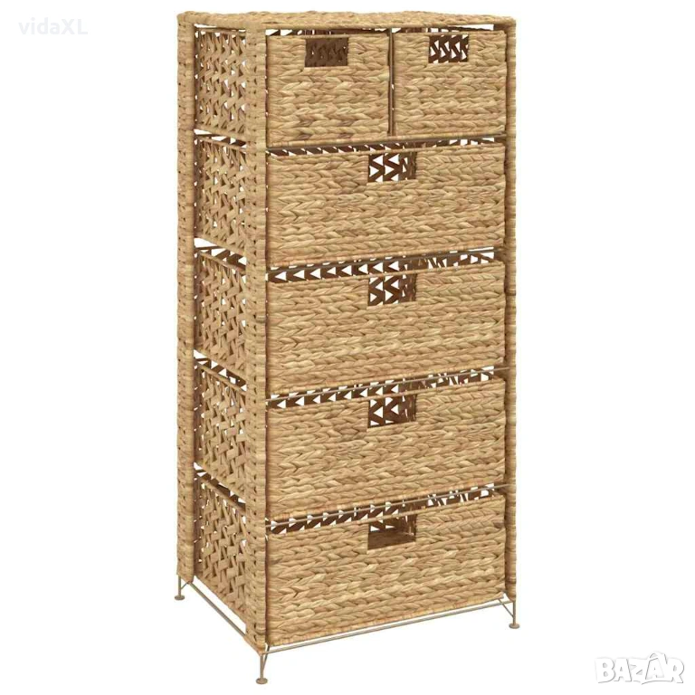 Скринът разполага с 6 чекмеджета, осигуряващи достатъчно пространство за съхранение на всякакви предмети. Състои се от метална рамка и воден хиацинт, което го прави здрав и издръжлив. Атрактивният плетен дизайн придава на шкафа рустик чар.