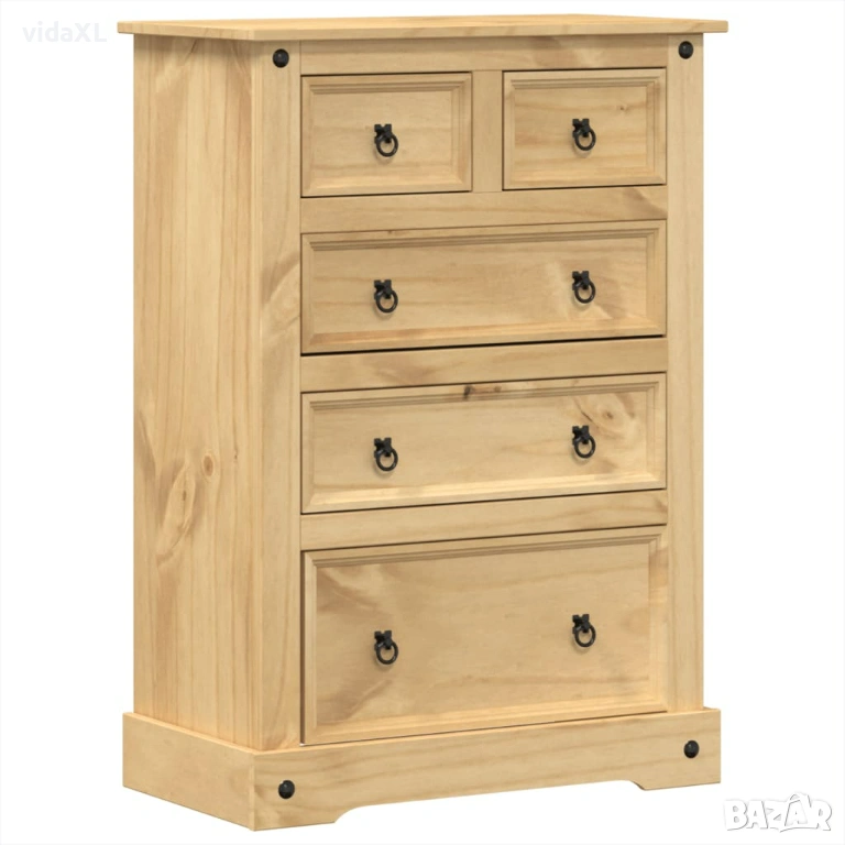 - Масивна борова дървесина: Масивната борова дървесина е красив естествен материал. Боровата дървесина е с продълговати шарки, а чеповете придават на материала характерния му рустик вид. Изработен от масивна борова дървесина, скринът е издръжлив и здрав.