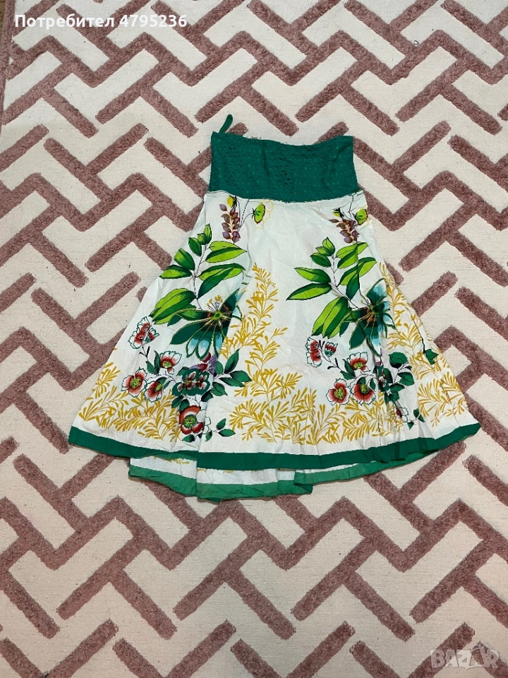• Флорална пола с висока талия: Бяло, зелено и жълто – много наситени цветове.