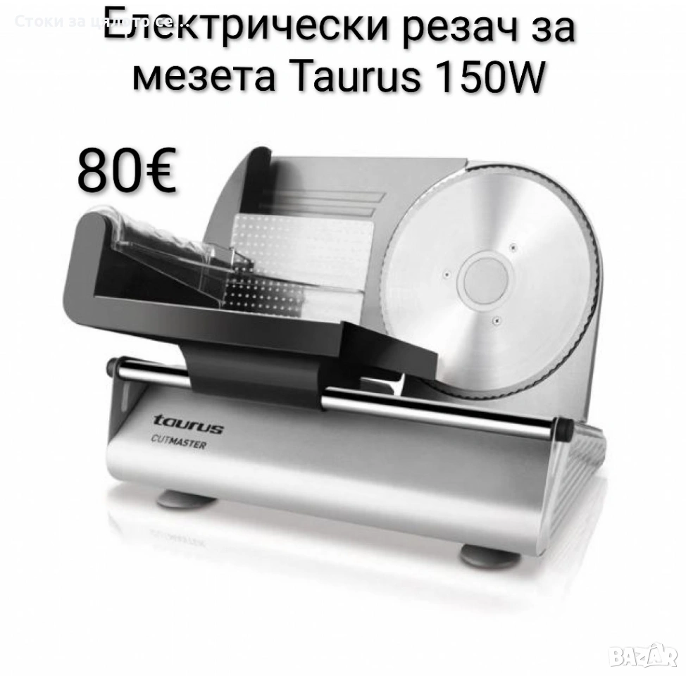 Електрически резач за мезета Taurus 150W, нож 19 см, регулируем срез 1–15 мм