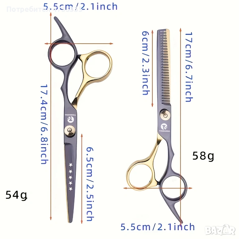 Професионални черни ножици за подстригване – остри и прниециз 2бр → Обява 54181259