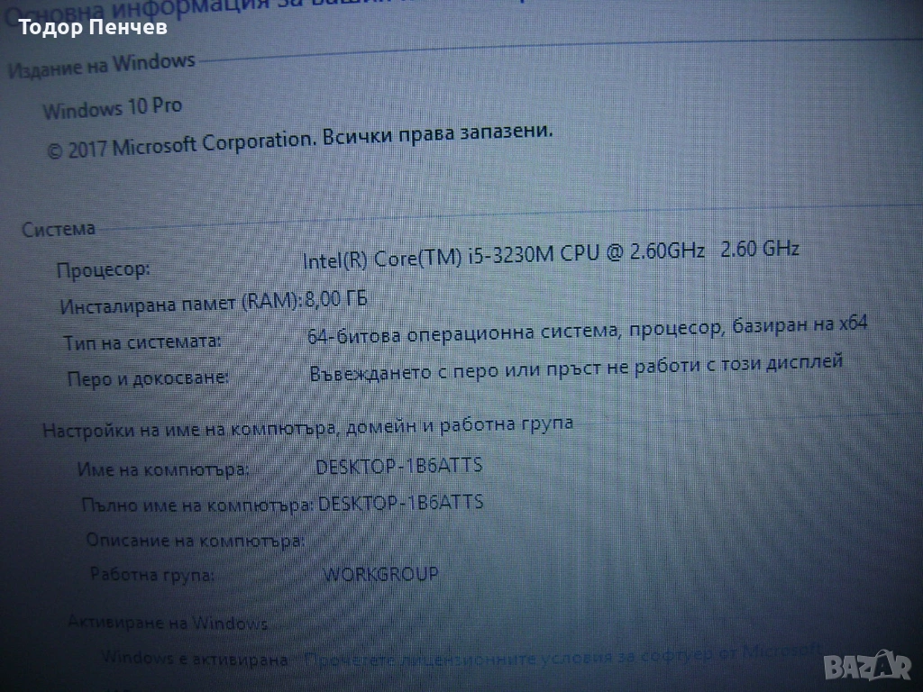 Лаптопа е преинсталиран и работи нормално с Windows 10. Качени са всички драйвери и някои основни програмки.Чист екран, добър процесор, голям хард диск, достатъчно памет. С два видеочипа - подходящ и за игри и мултимедия. Клавиатура, корпус, панти - ок