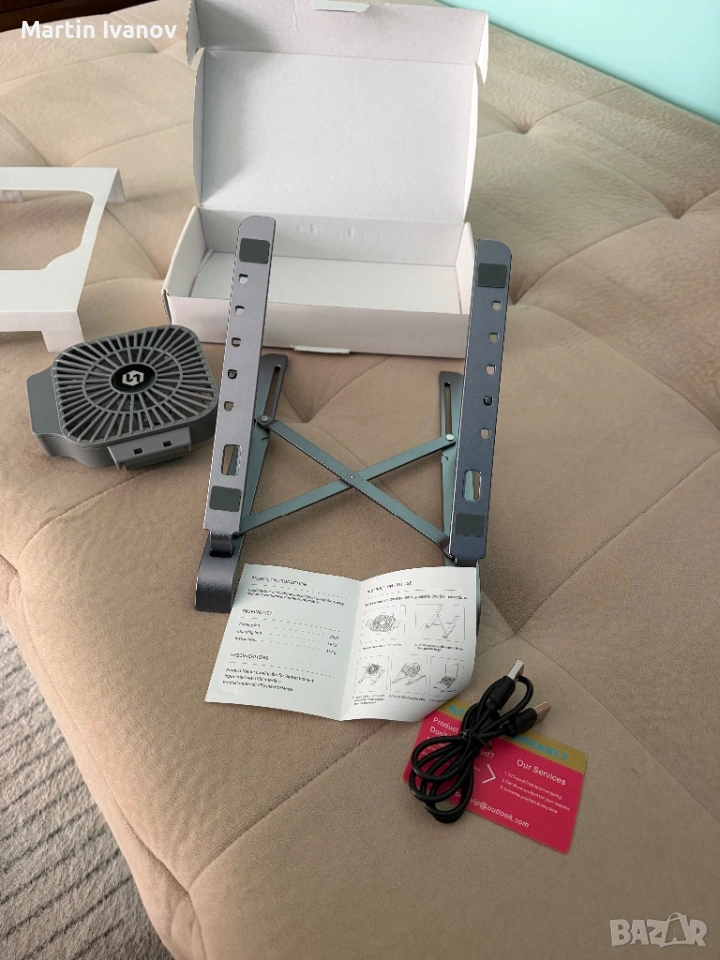 Стойка за лаптоп от 10 до 16 инча с вентилатор. Подходяща за ползване у дома или в офиса, осигурява подобрено охлаждане и удобно работно пространство. закупена от амазин англия https://www.amazon.co.uk/AiTodos®-Aluminium-Adjustable-Lightweight-Non-Slip-silver/dp/B0BJKGR6B4/ref=mp_s_a_1_5_sspa?crid=VJHMOV2KXEQF&dib=eyJ2IjoiMSJ9.Ss2wwCTex_glYbLIYJs03_5XzfMu1InNTgVuDBMJ2QTwEIGzv5Rnk-UrnttNAPepwPiTsGyIIV62Md7AFwrbiiI6TIuFD9Fsdp-0SjaOZn_ZjwtnL4RnS2H0y91CNOTwfnIAOzIIXdbVsgDDfNknVNNq1bErzAxlSkMhOHMx3ijbS-ERBxld_uayMFCed6jDQOeyhJrupaiHFyaTnN5yzQ.vXr_wqBtV68EHyTREahcyrLoHNoUZ9L2EMPlC-lDRRA&dib_tag=se&keywords=radiator+fun+laptop+stand+xps+10-16&qid=1776088920&sprefix=radiator+fun+laptop+stand+xps+10-16%2Caps%2C296&sr=8-5-spons&aref=hWfdBQVSwU&sp_csd=d2lkZ2V0TmFtZT1zcF9waG9uZV9zZWFyY2hfbXRm&psc=1