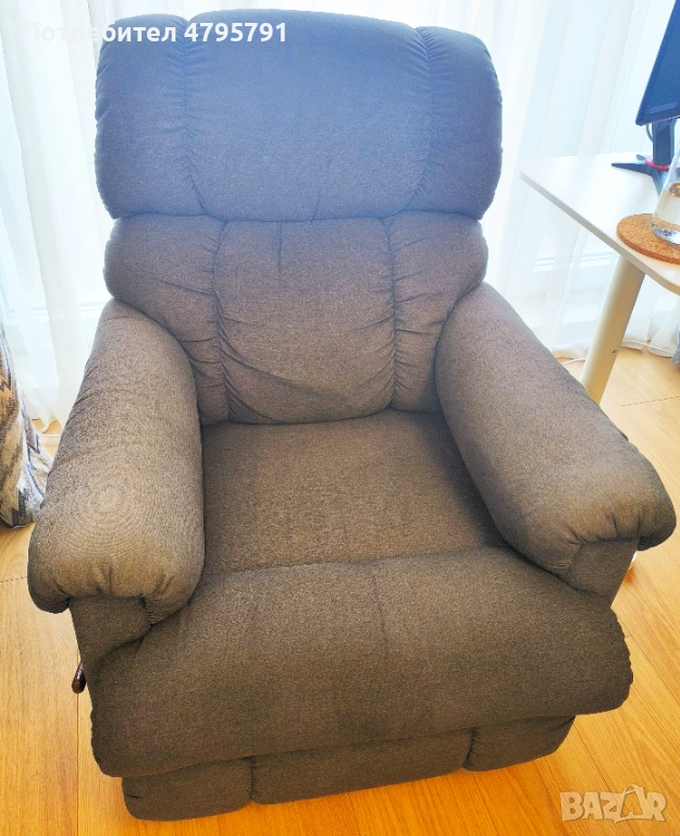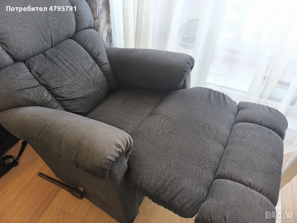 Продавам оригинален релакс стол La-Z-Boy Pinnacle Rocker Recliner (текстил Sarah Slate) в отлично състояние.