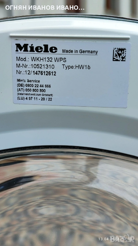 Miele W1 TwinDous, 9 kg, 1600 об,+ Гаранция