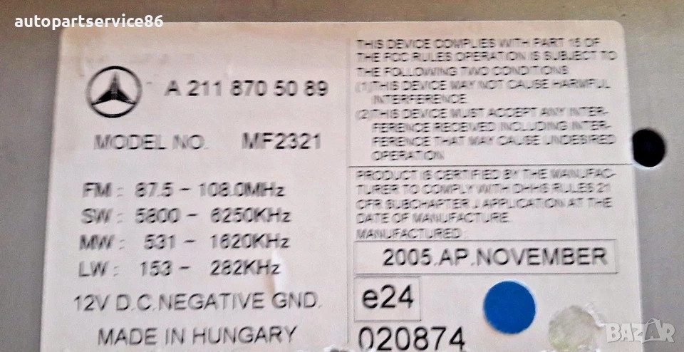 Радио CD за Mercedes CLS BE, W219 320 CDI (2007) MIGHT NEEDED A2118705089, снимка 1 - Части - 54181523 Радио CD за Mercedes CLS BE, W219 320 CDI (2007) MIGHT NEEDED A2118705089, снимка 2 - Части - 54181523 Радио CD за Mercedes CLS BE, W219 320 CDI (2007) MIGHT NEEDED A2118705089, снимка 3 - Части - 54181523 1/3