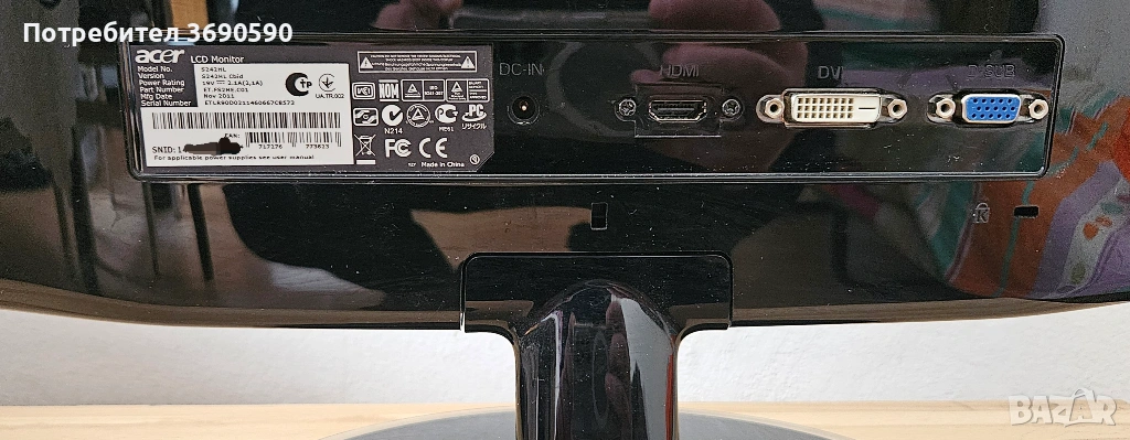 LED монитор Acer S24HL, снимка 1 - Монитори - 54181599 LED монитор Acer S24HL, снимка 2 - Монитори - 54181599 LED монитор Acer S24HL, снимка 3 - Монитори - 54181599 1/3