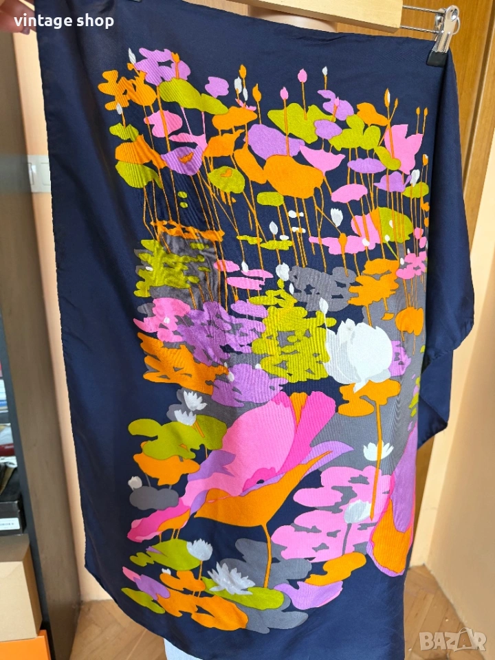 Изработен е от 100 % коприна. Етикетът за състав е изрязан.