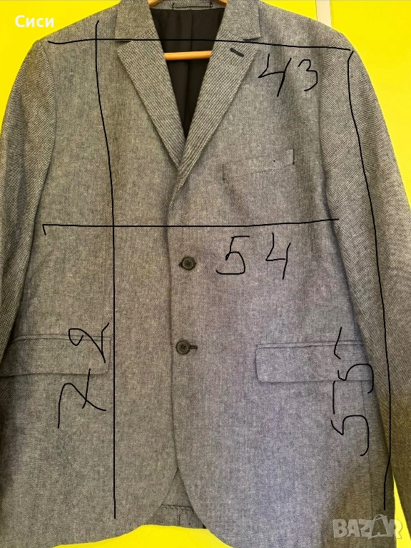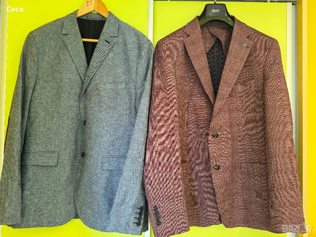 Сакото Teodor е ползвано 2-3 часа,с торбичка за пътуване е, цена - 40€,сакото HM е обличано 2-3 пъти,цена 25€.Има оразмеряване на снимките.