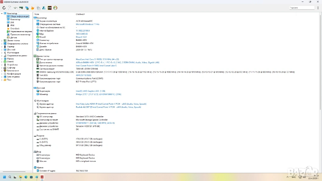 1. Дънна платка - ASRock B460M-HDV: