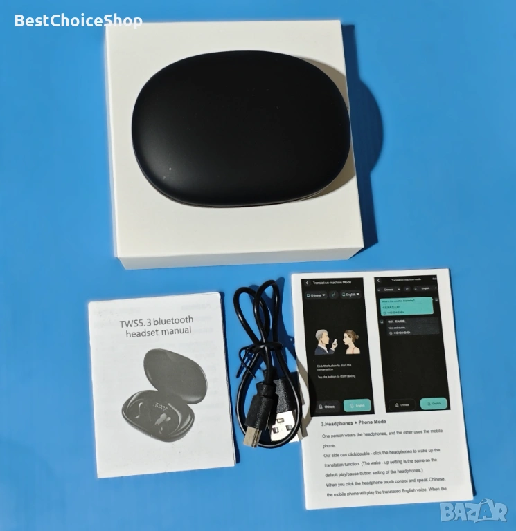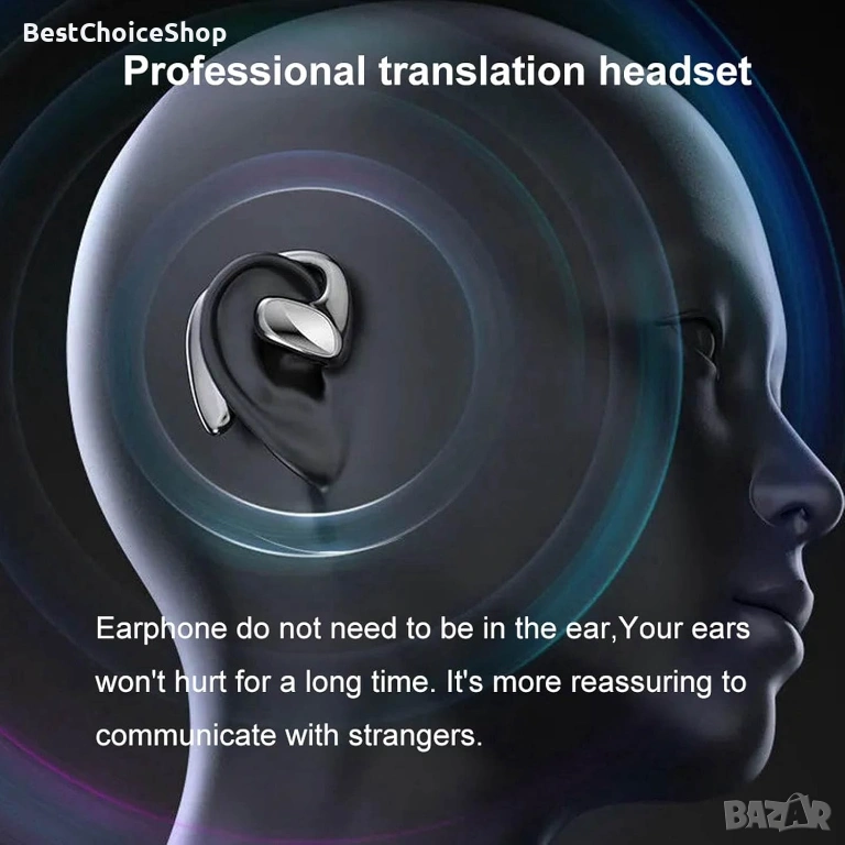 Bluetooth сдвояване: Слушалките за превод поддържат Bluetooth сдвояване с мобилен телефон. След Bluetooth връзка, те имат функция за симултанен превод в режим на докосване или режим на високоговорител.