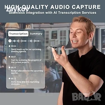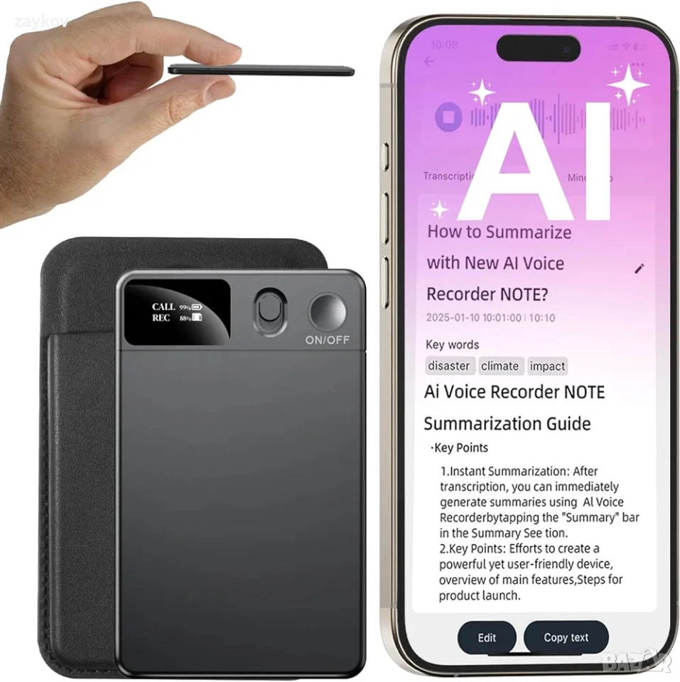 Диктофон с изкуствен интелект с калъф, управление от приложение, транскрипция