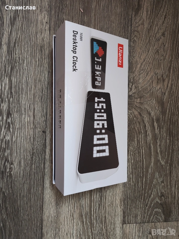 Интелигентен пикселен часовник Ulanzi TC001. Дисплей: LED матричен дисплей с 256 пиксела, показващ ретро пиксел арт. Функции: Показва време, времето (температура, влажност, налягане), брой последователи в социални медии (YouTube и др.) и таймер Pomodoro. Батерия: Вградена 4400 mAh батерия, осигуряваща до 5 часа работа, с USB-C порт за зареждане.