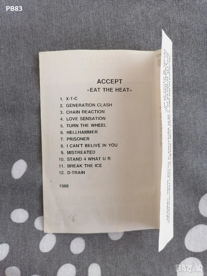 Accept - Eat The Heat (Unison) - (Аудио Касета) - Heavy Metal, снимка 1 - Аудио касети - 54182426 Accept - Eat The Heat (Unison) - (Аудио Касета) - Heavy Metal, снимка 2 - Аудио касети - 54182426 Accept - Eat The Heat (Unison) - (Аудио Касета) - Heavy Metal, снимка 3 - Аудио касети - 54182426 Accept - Eat The Heat (Unison) - (Аудио Касета) - Heavy Metal, снимка 4 - Аудио касети - 54182426 Accept - Eat The Heat (Unison) - (Аудио Касета) - Heavy Metal, снимка 5 - Аудио касети - 54182426 1/5