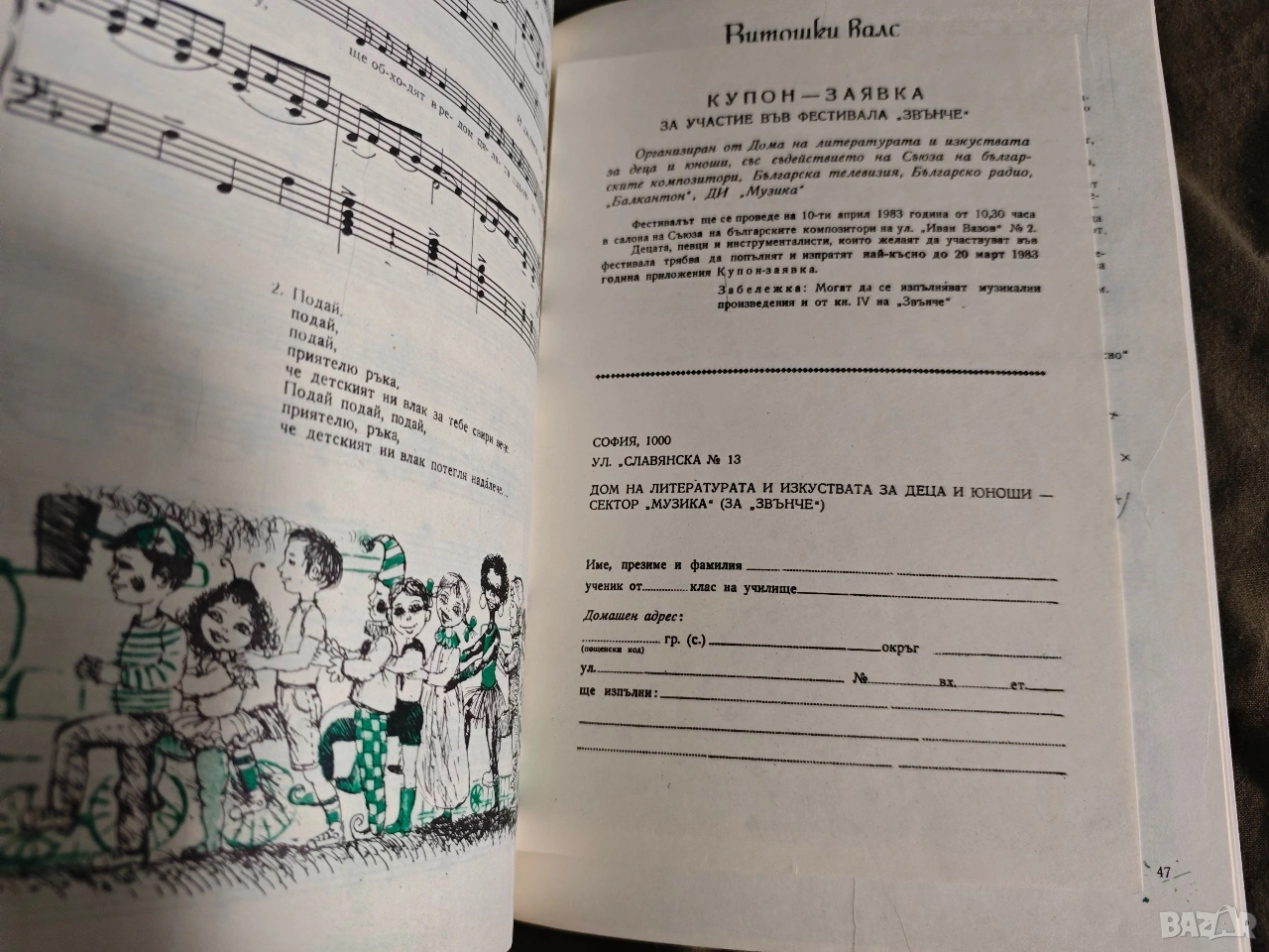 книжка с музика и за музиката Звънче → Обява 54182513