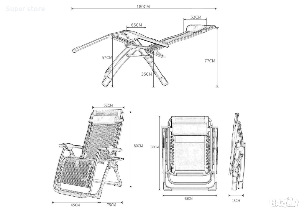 Този сгъваем шезлонг предлага изключителен комфорт и функционалност, подходящ както за градина и тераса, така и за плаж или къмпинг. С модерния си дизайн и здрава конструкция, той е идеален за пълноценна почивка и релакс.