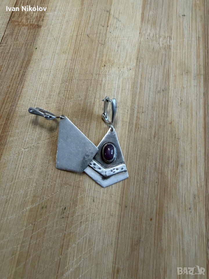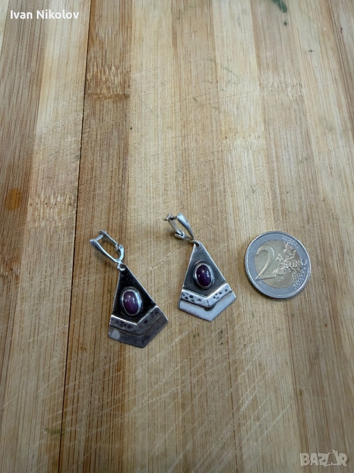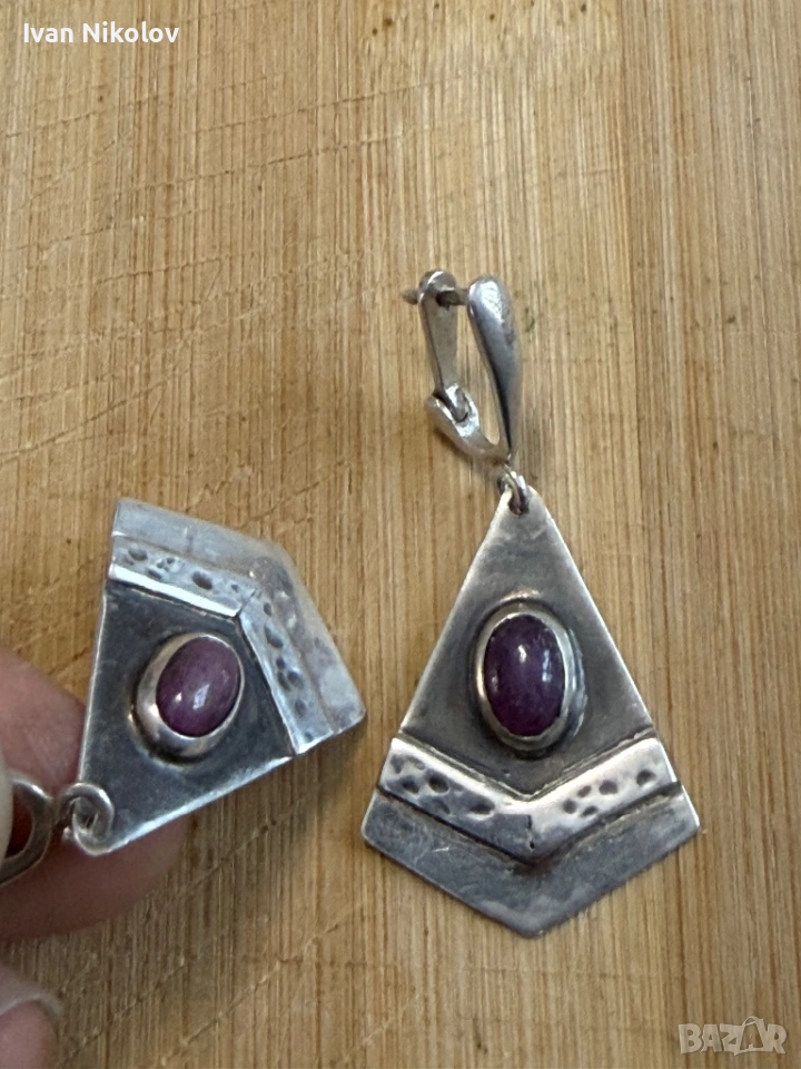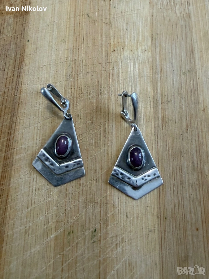 Дамски сребърни обеци с рубин ръчна изработка → Обява 54182722
