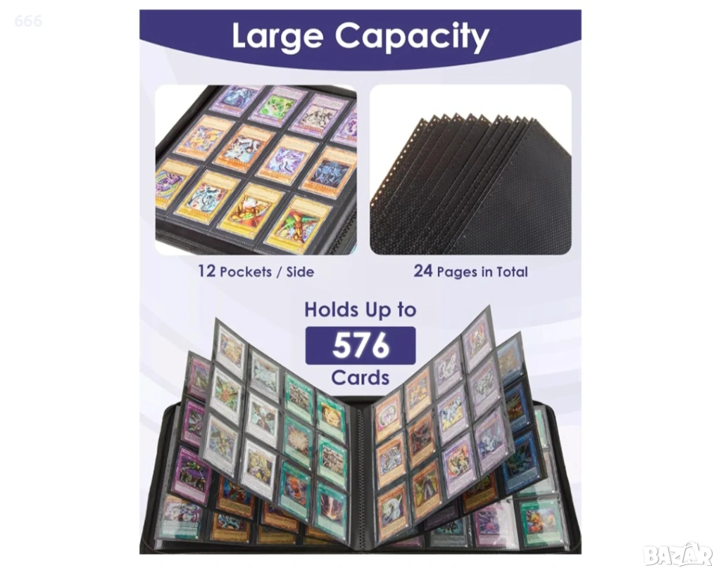 Достатъчно място за съхранение: С общо 576 джоба, разпределени на 24 двустранни страници, всяка с 24 джоба, нашият албум предлага голям капацитет за съхранение на вашата колекция от картички.