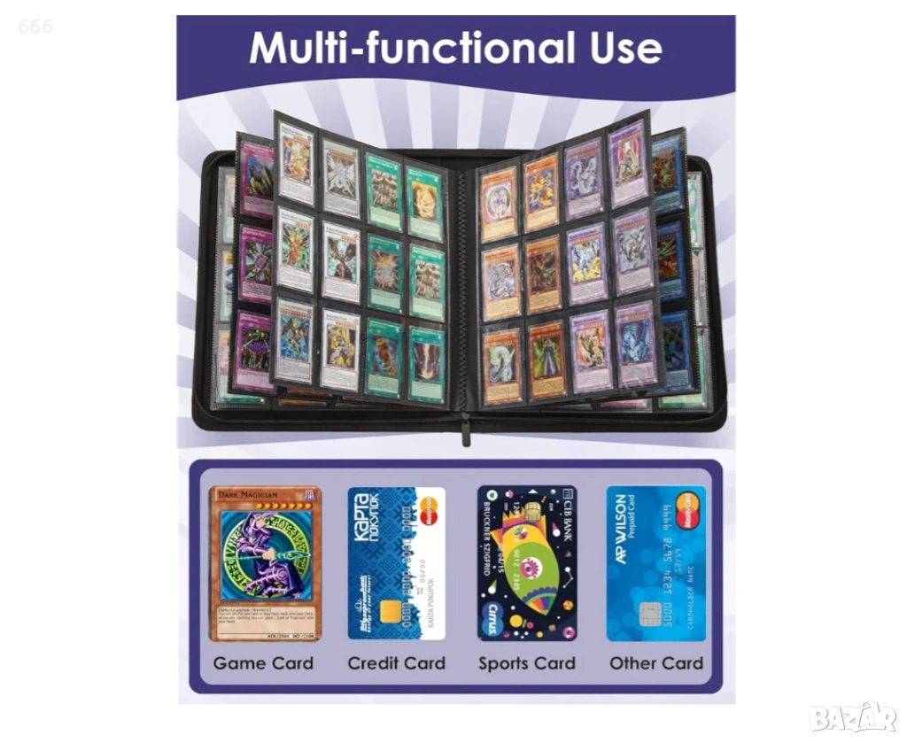 Албум за колекционерски картички Lictin, папка за карти с 576 джоба и цип, водоустойчиви папки за колекционерски карти с плъзгащо се зареждане, органайзер за карти за игрални карти, спортни карти, подаръчни карти и др.