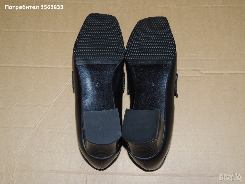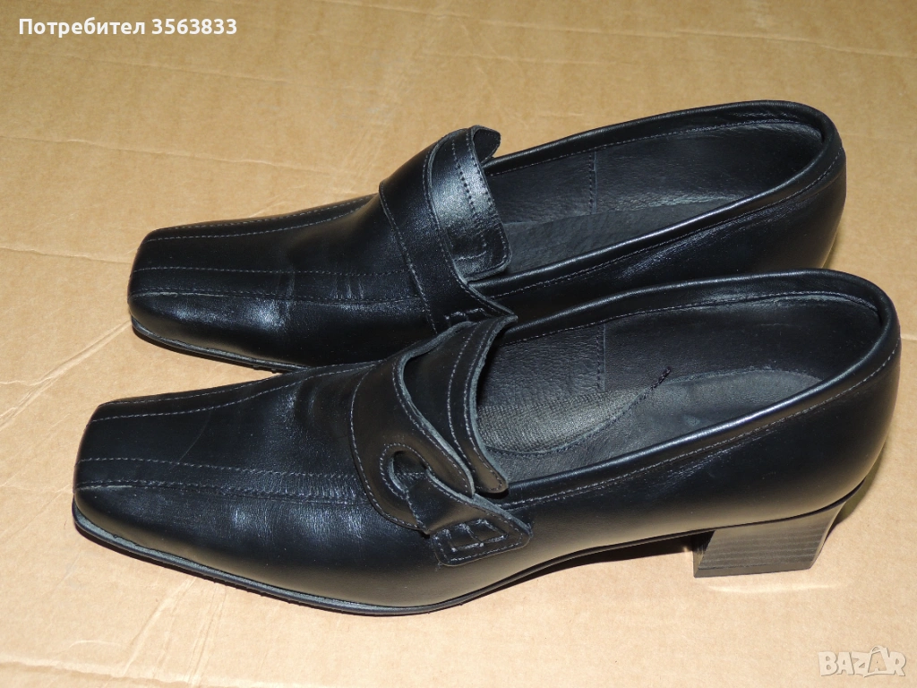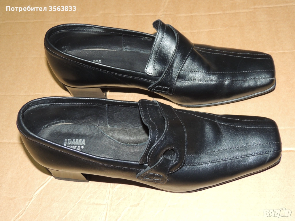 Чисто нови дамски обувки от естествена черна кожа. Размер: 39 номер. Българско производство DAMA PIKA - Ямбол. Купувани са за 70 €. продавам ги за 35 €.